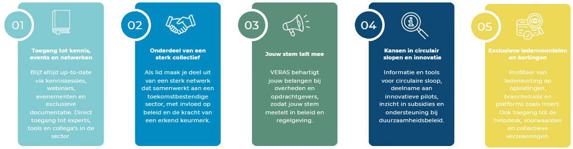 Als sloop- of asbestverwijderingsbedrijf profiteert u als lid van VERAS van een sterk netwerk, actuele kennis en een krachtige stem richting overheid en opdrachtgevers. Samen werken we aan een veilige, professionele en circulaire toekomst voor de branche.